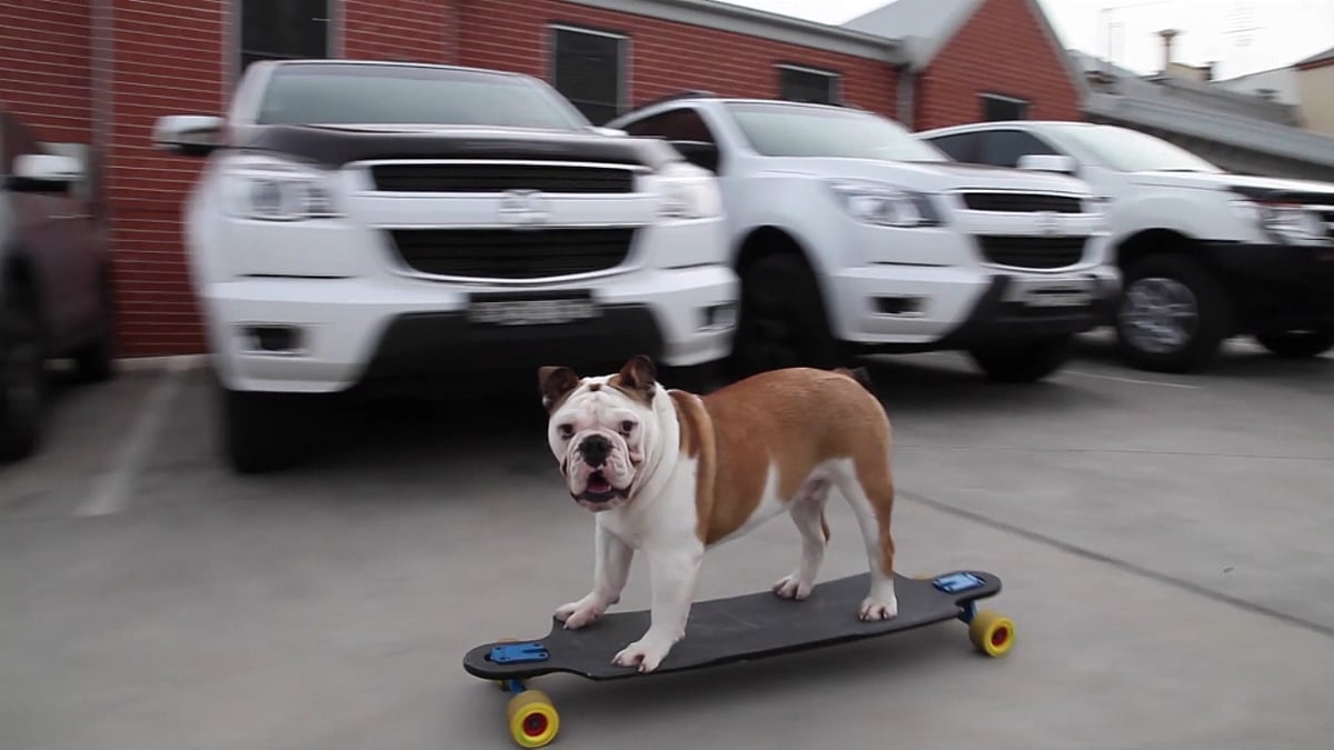 Pommy, the British Bulldog Shows off His Skills on a Skateboard