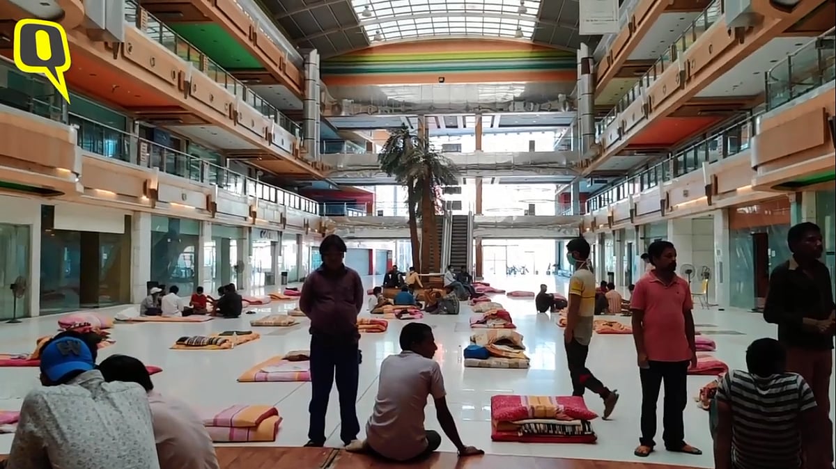 लॉकडाउन: अहमदाबाद के मॉल में सोशल डिस्टेंसिंग से साथ रह रहे मजदूर