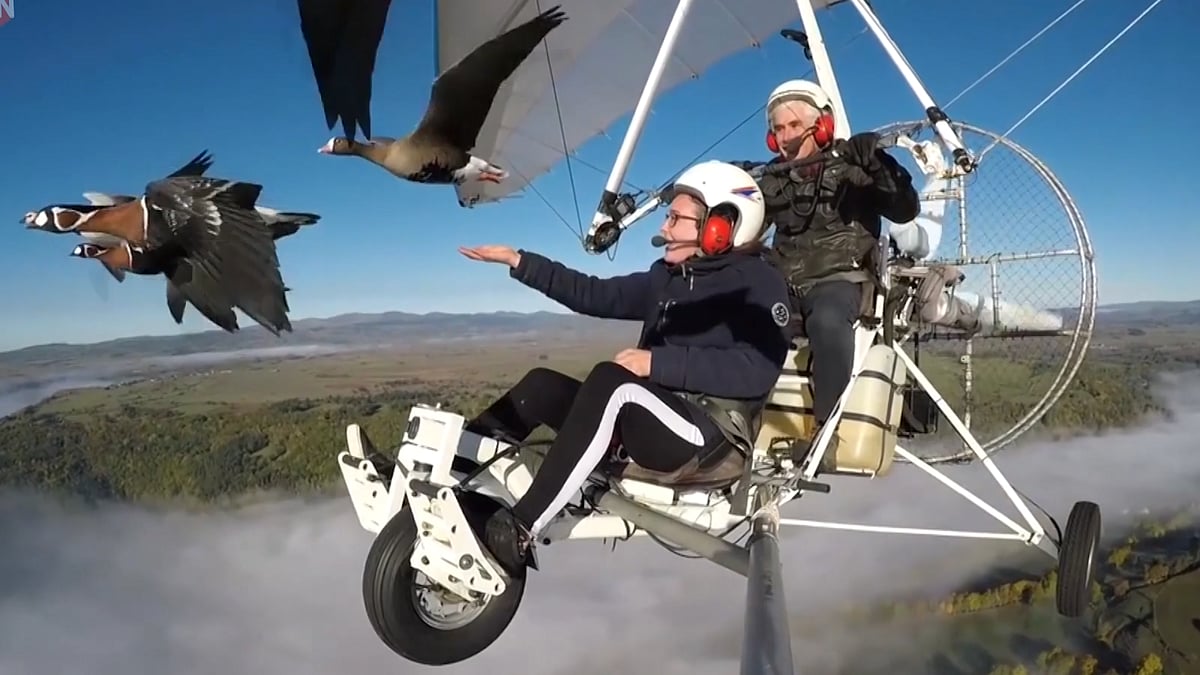 This Man is Flying With Migratory Birds to Guide Them