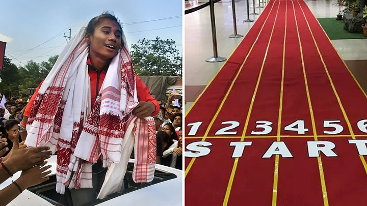 Unique Welcome For Hima Das at Guwahati Airport After Asiad Win