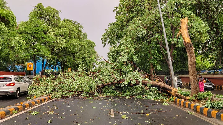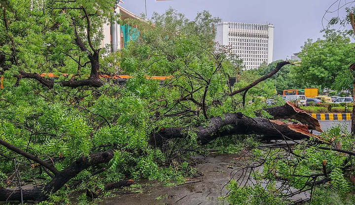 In one incident, a tree uprooted and fell over a car parked in Connaught Place. A traffic stand also fell at Vijay Chowk.
