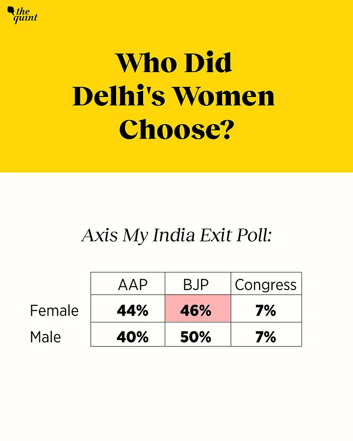 Meanwhile, Axis My India has estimated 46 percent women favouring BJP, while 44 percent preferring AAP.