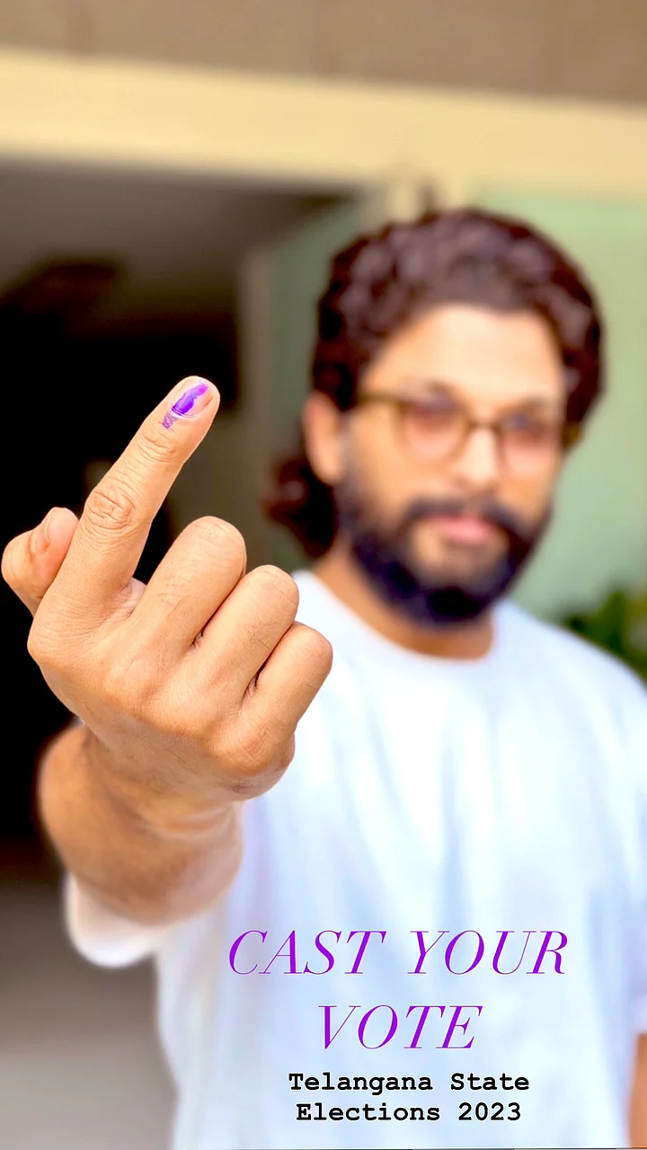 Actor Ram Charan cast his vote at a polling booth in Jubilee Hills, Hyderabad.