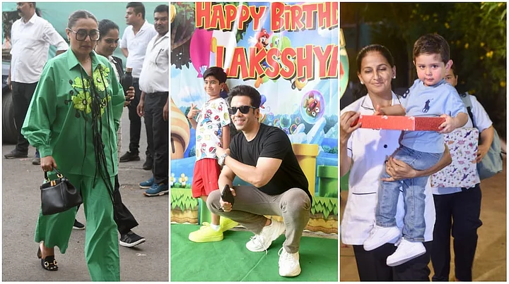 Pics: Rani Mukerji, Taimur-Jeh & Others Arrive For Tusshar Kapoor's Son's B'day
