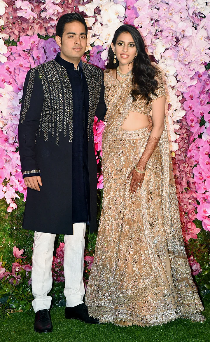 - 01/21Akash Ambani and Shloka Mehta, the groom and bride at their post-wedding celebration.(Photo: Yogen Shah)