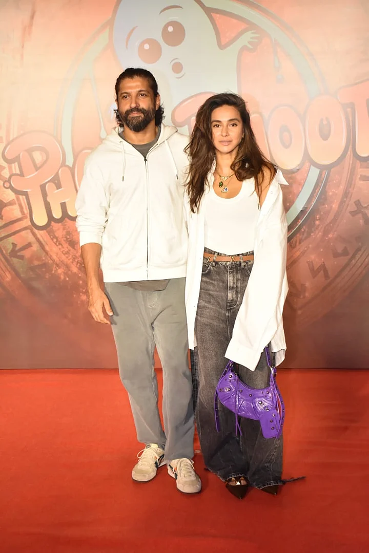 Farhan Akhtar and Shibani Dadekar at the screening of 'Phone Bhoot'.