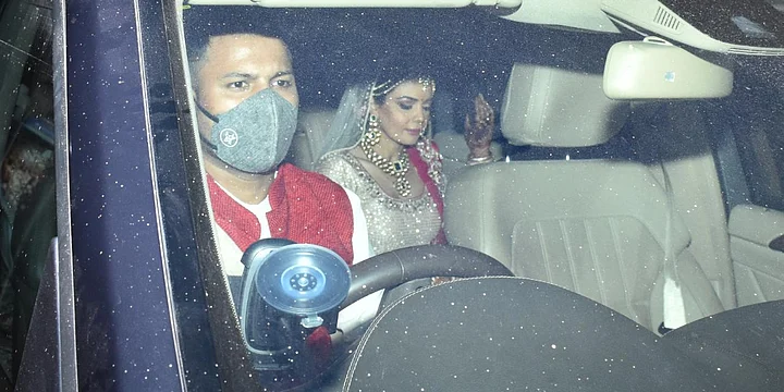- 05/06Shweta Agarwal arrives at the venue in her bridal finery.Photo courtesy: Viral Bhayani