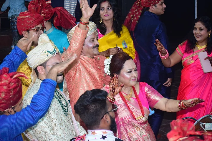 - 02/06Aditya and his parents groove during the baraat.Photo courtesy: Viral Bhayani