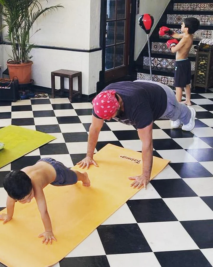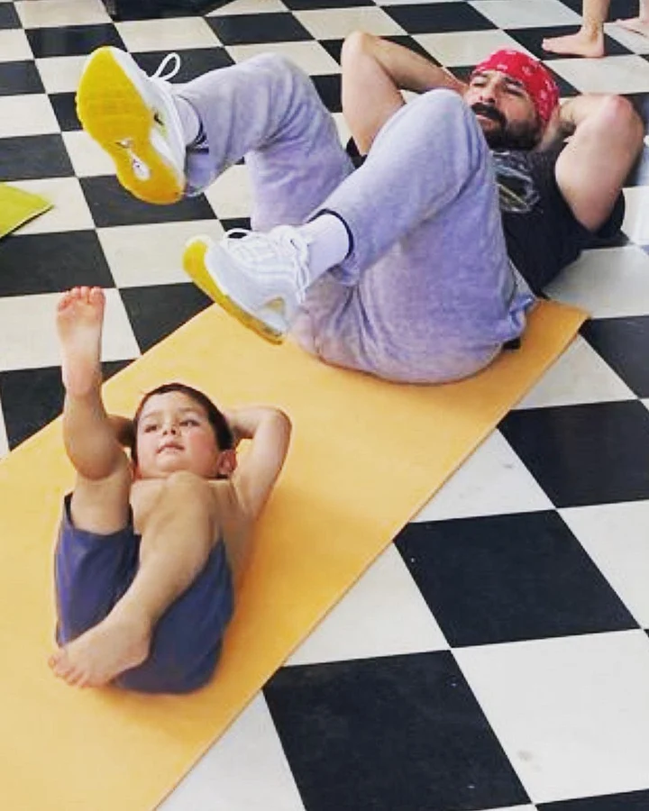 On Yoga Day, Kareena Kapoor shared a photo of Saif Ali Khan and their kids doing yoga.