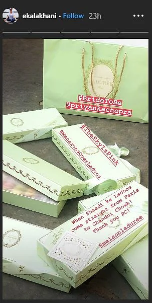 And it seems the invites are being sent out to all the guests, with a box a macarons all the way from Paris! Now we know what Priyanka and her mother, Madhu were up to in France. Farhan Akhtar and costume designer Eka Lakhani took to Instagram to share photos of the non-traditional shaadi ke ladoos.