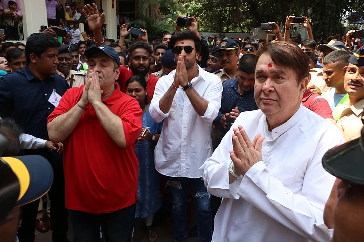 - 02/05Rishi Kapoor joins his hands in a prayer before the procession begins.(Photo: Yogen Shah)