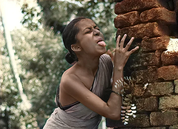 One could argue that the manual colouring has an aesthetic edge - there are transitions from black and white to colour to constantly remind us that it is but an experiment. The colouring itself is not uniform, there is emphasis added to portions of the frame by a human being. Yet, we forget that these nitty-gritties can be taught to the AI in no time. This is exactly what scares artists. That they would no longer be needed when AI learns what they know, in a couple of years. We forget that it is impossible to do quality improvement through manual methods.
