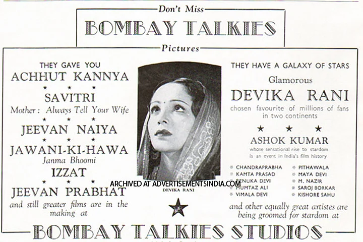 A year after the outbreak of World War II, Rai died following a nervous breakdown. Devika Rani took over to become the supremo, starring in a series of social reformist films including Durga (1939), Anjaan (1941) and Hamari Baat (1943).