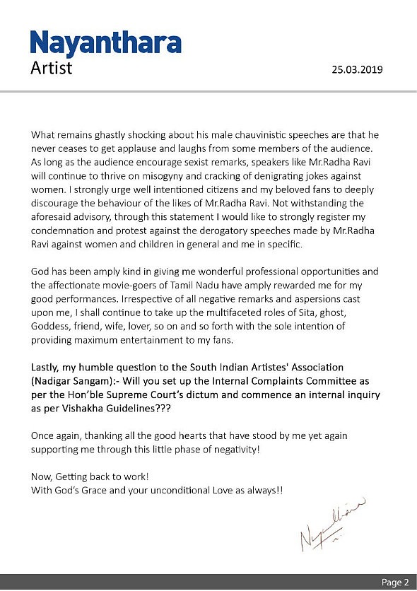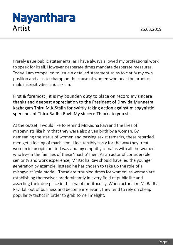 - 02/02Nayanthara’s statement on Radha Ravi’s comment.