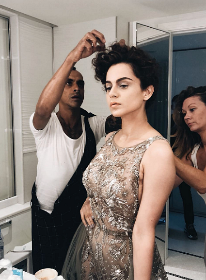 - 01/12Kangana Ranaut gets her hair done before her red carpet appearance at Cannes.(Photo courtesy: Twitter)