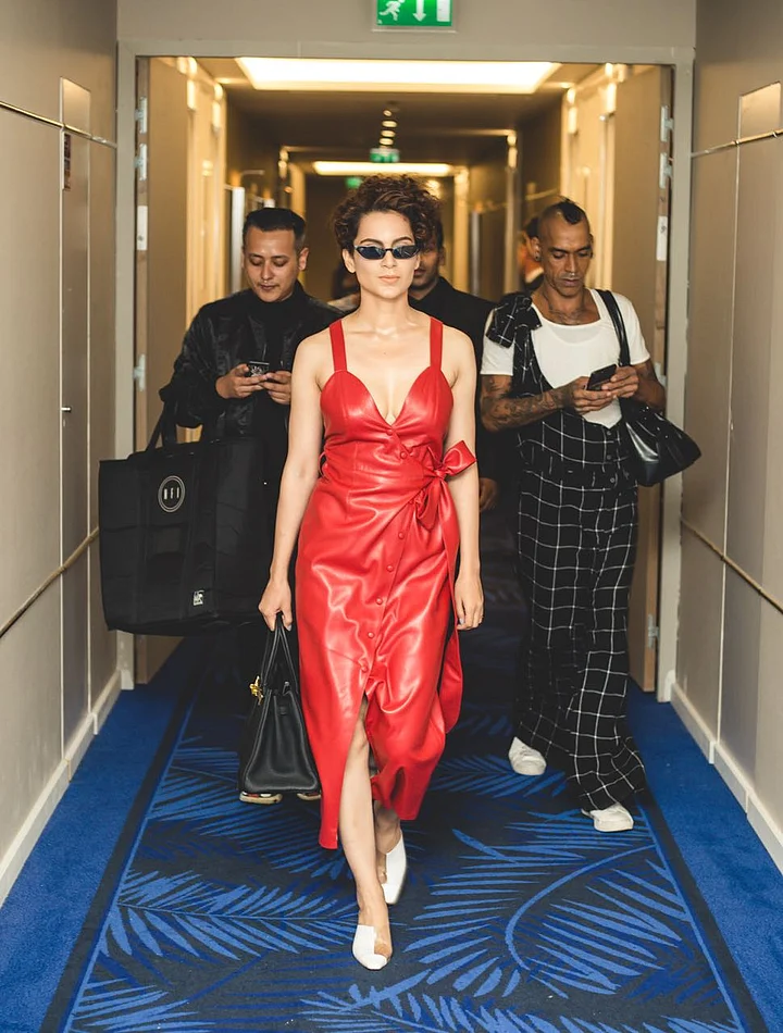 - 06/12Kangana wears a Jacket, bra and trousers; Trussardi Shoes and a Manolo Blahnik Necklace paired with Alighieri Sunglasses. (Photo courtesy: Twitter)