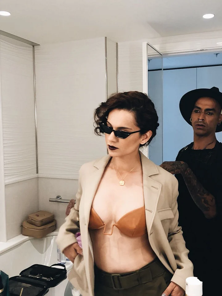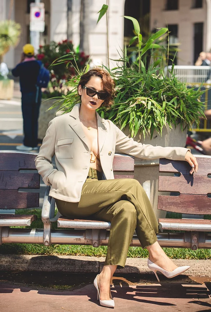 In her next look, Kangana wears a Jacket, bra and trousers; Trussardi Shoes and a Manolo Blahnik Necklace paired with Alighieri Sunglasses.