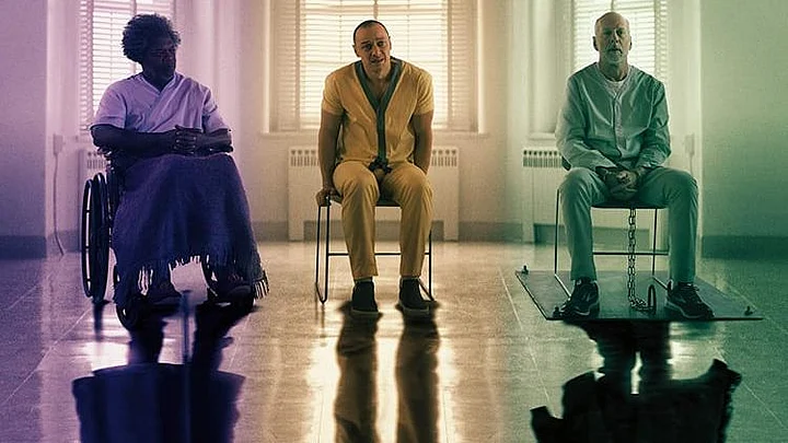 This is the third entry in Shyamalan’s trilogy on superheroes and supervillains, though fan theories have coined a special term for it―Eastrail 177 trilogy. It takes off with Bruce Willis’ David Dunn playing a low-cost Batman of Philadelphia aided by his ‘Alfred’ son (a very grown up Spencer Treat Clark from Unbreakable). He dons a hooded poncho to find criminals and thrash them out of their senses. It takes no time for Dunn to find Kevin Wendell Crumb (James McAvoy), the kidnapper cum serial killer who has taken some high-school students as his hostages in a rundown basement. Yes, the same Kevin we met in Split who juggles multiple personalities including a dreaded monster called the Beast (not to be confused with the hairy bookworm of the X-Men universe). A quick combat later, both of them find themselves in a mental institution in which is also lodged the fragile-boned supermind, Mr Glass.