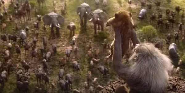 The trailer begins with Mufasa aka James Earl Jones’ narration in the background and moves to the iconic shot of Rafiki hoisting Simba for all of the animals in the Pride Lands to see, with the original film’s track, Circle of Life being played in the background.
