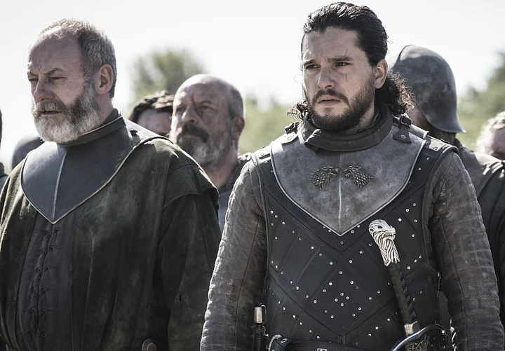 - 07/09Ser Davos, Jon Snow and Tyrion get a good look at the Golden Company’s army. (Photo courtesy: HBO)