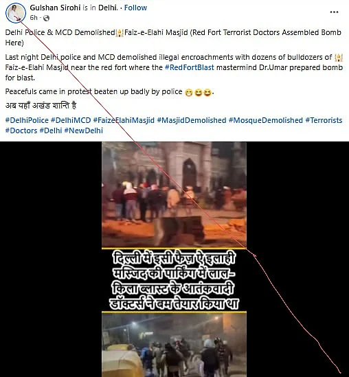 ध्वस्तीकरण की सुबह, द क्विंट को ऐसी कई सोशल मीडिया पोस्ट्स मिली, जिनमें यह दावा किया जा रहा था कि "फैज-ए-इलाही मस्जिद" को भी 'गिरा' दिया गया है.