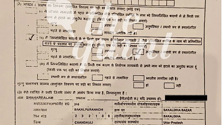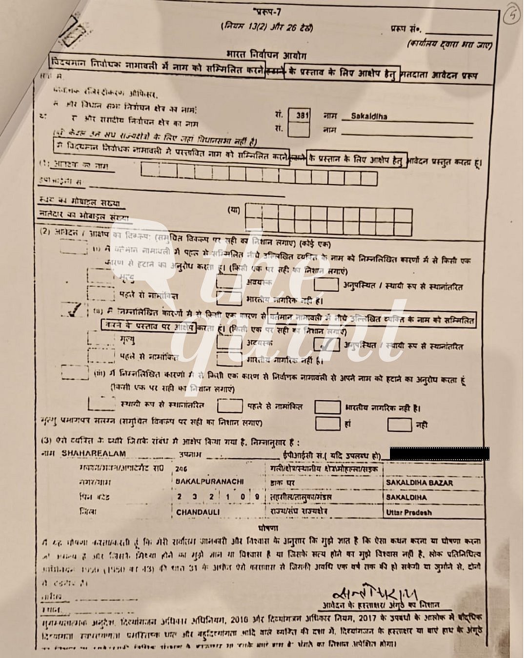 चंदौली की सकलडीहा विधानसभा के पांच गांवों से द क्विंट को जो 'फॉर्म-7' (वोटर लिस्ट में नाम हटाने या आपत्ति दर्ज करने के लिए इस्तेमाल होने वाला फॉर्म) मिले हैं, उनमें 84 मुस्लिम वोटरों के नाम काटने की अर्जी दी गई है.