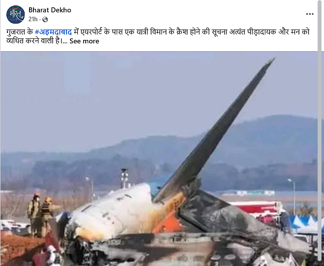अहमदाबाद हादसे को लेकर एक अन्य तस्वीर भी वायरल हो रही है जिसका अहमदाबाद विमान हादसे से कोई संबंध नहीं है बल्कि यह तस्वीर साउथ कोरिया में हुए विमान हादसे की है.