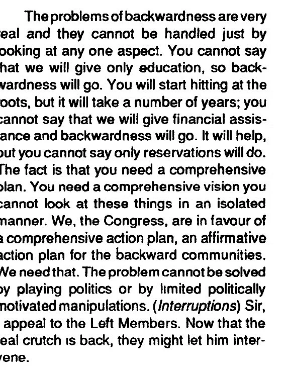 राजीव गांधी ने अपने पूरे भाषण में संसद से 'जातिविहीन' समाज के लक्ष्य की ओर बढ़ने का आग्रह किया.