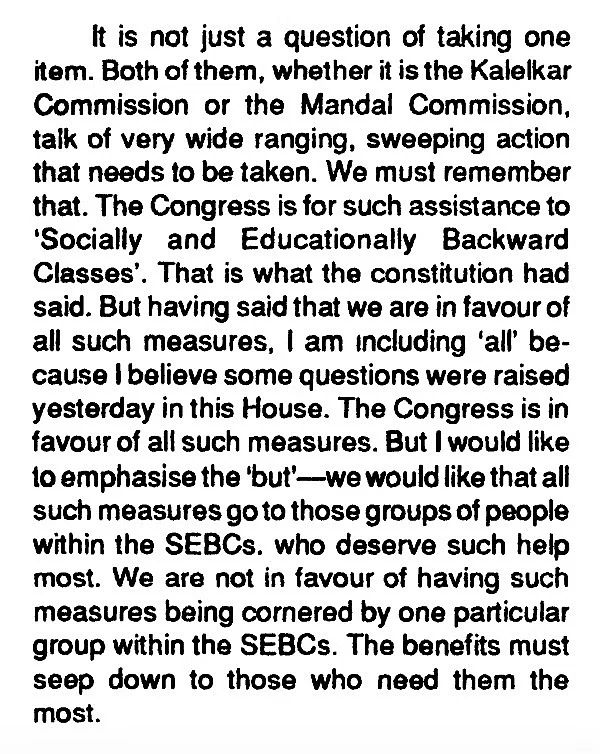 हमें जांच में क्या मिला?: हमने 6 सितंबर 1990 को संसद में मंडल आयोग की रिपोर्ट और प्रमोशन के उपायों पर चर्चा के दौरान राजीव गांधी द्वारा दिए गए भाषण को पढ़ा.