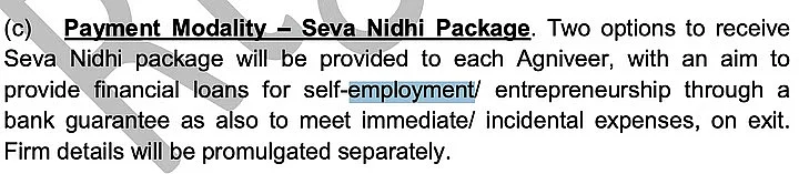 एक और प्वाइंट में दिया गया है कि चार साल के बाद, अग्निवीरों को 'सेवा निधी' पैकेज दिया जाएगा, जिससे वो दूसरे सेक्टरों में नौकरी की गुंजाइश के लिए समाज में वापस लौट सकें.