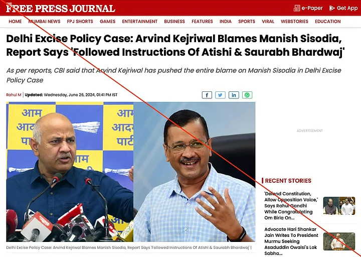 हमें सच्चाई का पता कैसे चला: हमने Google पर 'Arvind Kejriwal Blame Sisodia for Scam' जैसे कीवर्ड सर्च किए. इससे हमें 26 जून 2024 को छपी Live Law की एक रिपोर्ट मिली.