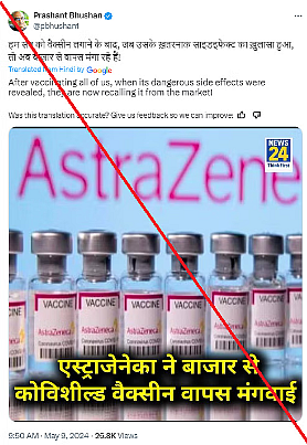 निष्कर्ष: ये दावा गलत है कि साइड इफेक्ट की बात स्वीकार करने के बाद एस्ट्राजेनेका ने अपनी कोविड-19 वैक्सीन वापस ले ली. इसका पूरा संदर्भ नहीं बताया जा रहा.
