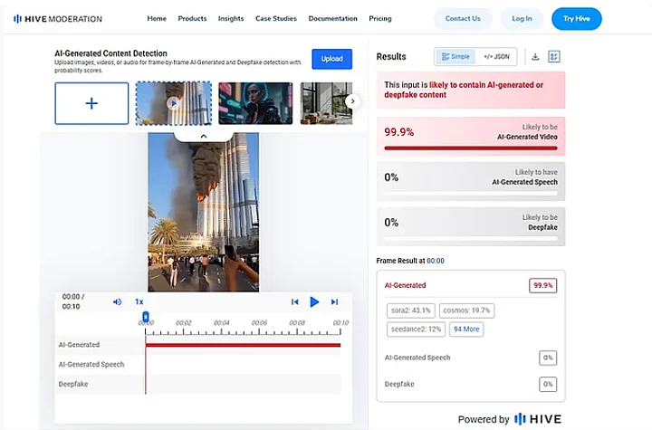 Hive Moderation ने इस वीडियो के AI से बने होने की 99 प्रतिशत से ज्यादा संभावना जताई.