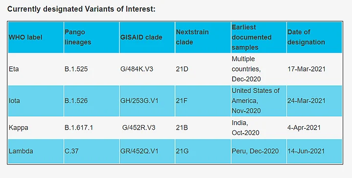 डब्ल्यूएचओ के अनुसार, अभी तक 10 ऐसे वेरिएंट की पहचान की गई है जो चिंता का विषय (वैरिएंट ऑफ कंसर्न) हैं और जो वैरिएंट्स ऑफ इंट्रेस्ट हैं.