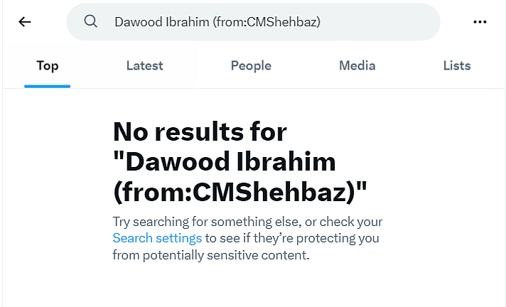 ट्विटर एडवांस सर्च की मदद से हमें पता चला कि शहबाज शरीफ और अनवार उल हक के उन X अकाउंट्स से कभी दाऊद इब्राहिम को लेकर कोई ट्वीट ही नहीं हुआ, जिनका बताकर फेक स्क्रीनशॉट शेयर किया जा रहा है.