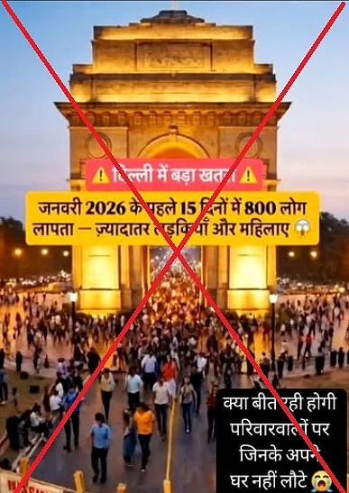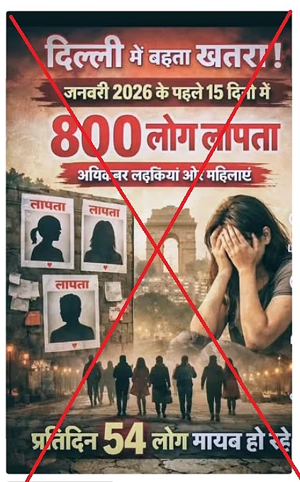 सोशल मीडिया पर बड़े पैमाने पर शेयर हो रहे सोशल मीडिया पोस्ट और न्यूज रिपोर्ट्स में ये दावा किया जा रहा है कि दिल्ली पुलिस ने बढ़ते गुमशुदगी के मामलों को लेकर अलर्ट जारी किया है. पोस्ट में बताया गया है कि जनवरी 2026 के पहले 15 दिनों में 800 से ज्यादा गुमशुदगी के मामले दर्ज हुए हैं, जो कि एक चौंकाने वाला आंकड़ा है.
