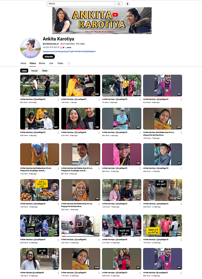 Ankita Karotiya के फेसबुक पेज पर भी उन्हें एक कंटेंट क्रिएटर और एक्टर बताया गया है. यहां अंकिता लाइव आकर अपने फैंस से अपने वीडियो के बारे में बात भी करती हैं.