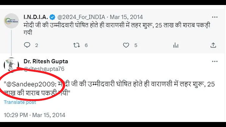 इसके अलावा, हमने @Sandeep2009 को X पर सर्च करके देखा तो हमें जो पोस्ट मिले वो @2024_For_India के ही मिले.