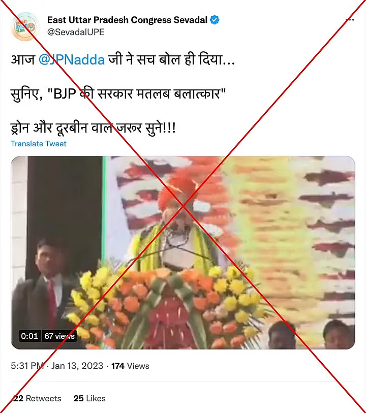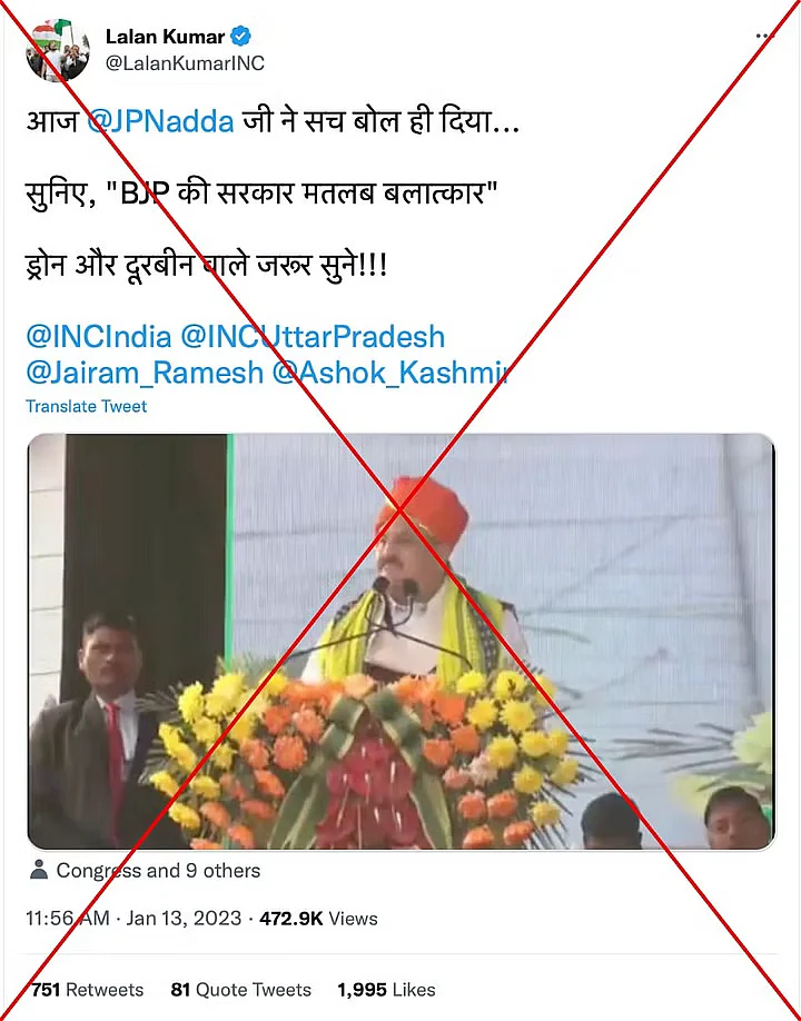 निष्कर्ष: जेपी नड्डा का वीडियो एडिट कर इस गलत दावे से शेयर किया गया कि उन्होंने बीजेपी सरकार की तुलना रेप से की है.