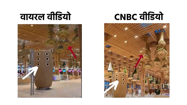 हमें CNBC के वेरिफाइड यूट्यूब हैंडल पर इसी एयरपोर्ट पर एक वीडियो भी मिला. जिसके स्क्रीनग्रैब और वायरल वीडियो के बीच तुलना आप नीचे देख सकते हैं.
