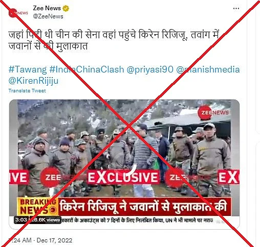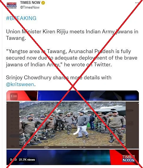 ट्वीट कैप्शन में रिजिजू ने लिखा था कि तवांग का यांग्त्से एरिया सुरक्षित है क्योंकि यहां सेना की पर्याप्त तैनाती है.