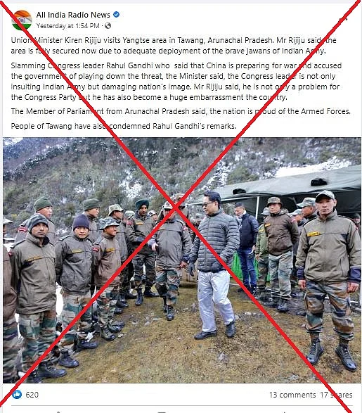 ये तस्वीर रिजिजू ने राहुल गांधी के उस वीडियो के जवाब में शेयर किया था, जिसमें राहुल गांधी भारत-चीन सीमा पर सेना के पीटे जाने और केंद्र सरकार की विफलता पर सवाल उठाते दिख रहे हैं.