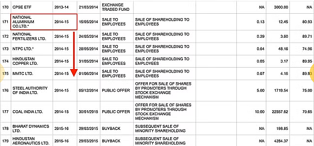 क्रम संख्या 171 से शुरू करते हुए, हमने देखा कि 2014 के बाद से सरकार ने जिन सार्वजनिक उपक्रमों से विनिवेश किया है, उनकी सूची क्रम संख्या 350 पर समाप्त होती है.