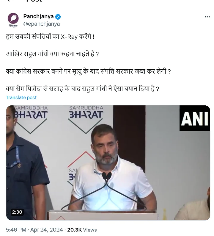 पित्रौदा ने अपने बयान में कहीं नहीं कहा कि कांग्रेस की सरकार बनने पर Inheritence Tax भारत में लागू किया जाएगा. इसके उलट पित्रौदा ने अपने इंटरव्यू में ये भी कहा है कि कांग्रेस का मकसद किसी की संपत्ति किसी और को देना नहीं है.