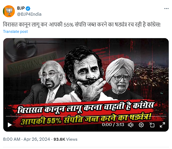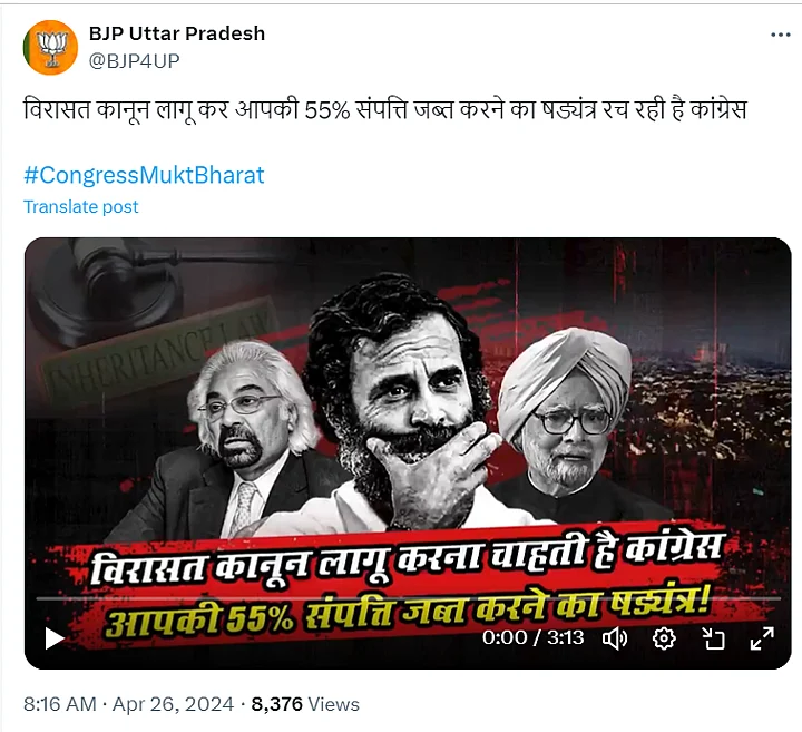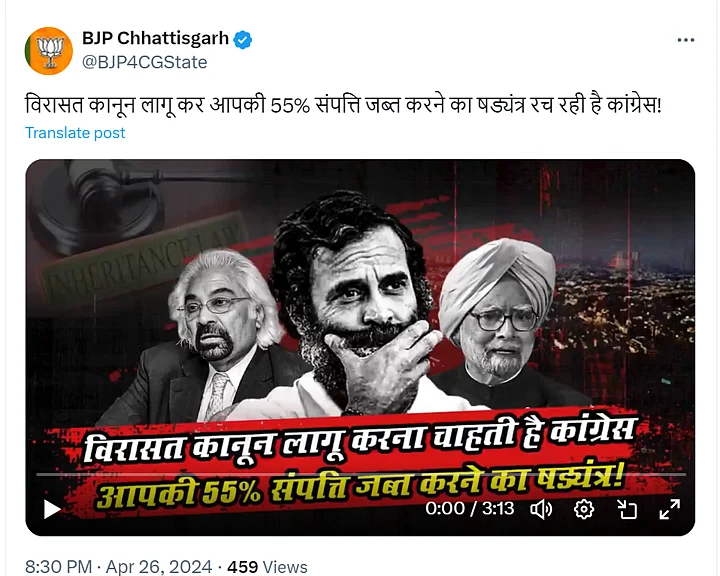 लोकसभा चुनाव (Loksabha Elections 2024) के बीच प्रधानमंत्री नरेंद्र मोदी (Narendra Modi) समेत कई बीजेपी नेताओं ने ये आरोप लगाया है कि कांग्रेस की सरकार बनती है तो लोगों की आधी संपत्ति सरकार ले लेगी. अब ये दावा मेन स्ट्रीम मीडिया पर भी जोरों शोरों से किया जा रहा है. कई चैनल/न्यूज वेबसाइट लगातार 'कांग्रेस के Wealth Re- Distribution प्लान' जैसे शब्दों का इस्तेमाल कर रहे हैं.