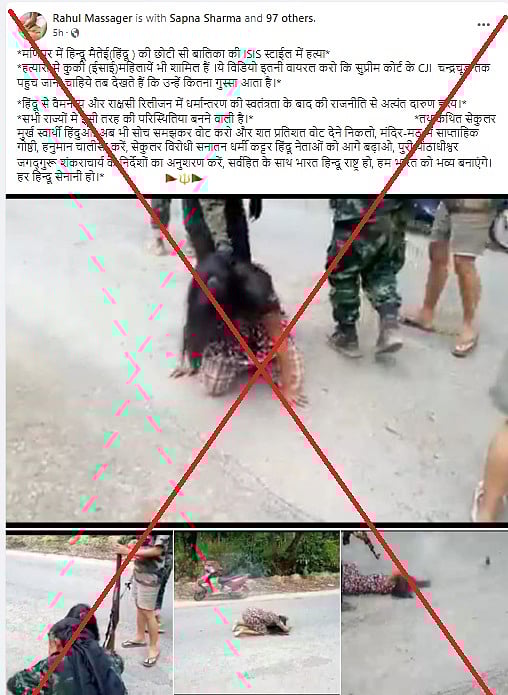 क्या दावा सच है ? : नहीं, वायरल वीडियो दिसंबर 2022 से ही इंटरनेट पर उपलब्ध है, तो जाहिर है ये मणिपुर में मई 2023 से भड़की हिंसा से जुड़ा नहीं है. 2022 की मीडिया रिपोर्ट्स में वीडियो को म्यांमार का बताया गया है.