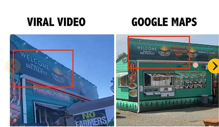 यह साफ रूप से देखा जा सकता है कि दोनों विजुअल में एक ही कांटेक्ट नंबर और साइनबोर्ड है.