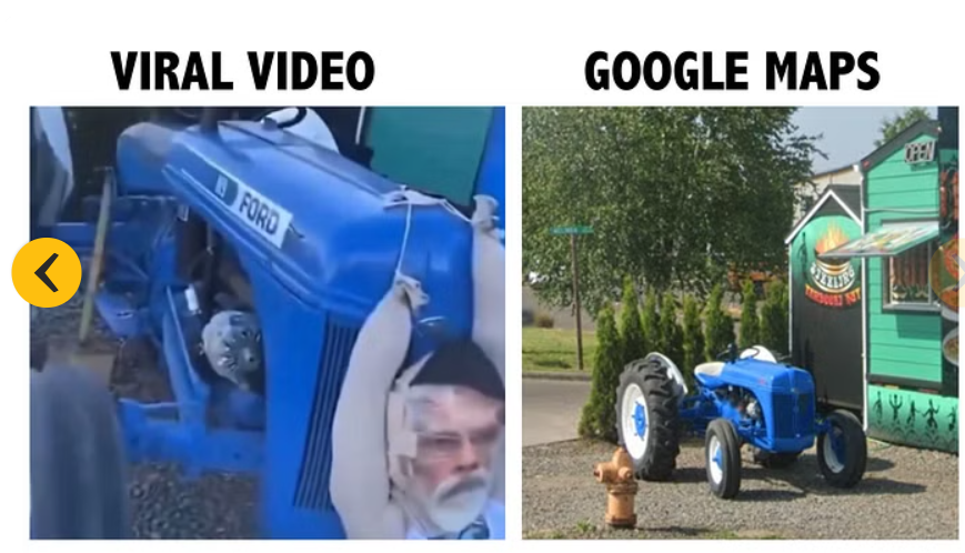 इस जगह का जियोलोकेशन: यहां से अंदाजा लगाते हुए हमने Google Maps पर यह दुकान ढूंढी. 'स्ट्रीट व्यू' ऑप्शन का इस्तेमाल करते हुए हमने उस जगह का पता लगाया जहां यह वीडियो रिकॉर्ड किया गया था.