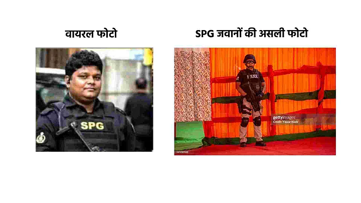 फोटो में कथित SPG जवान की जो वर्दी दिखाई गई है वो वर्दी भी असली SPG जवानों से मेल नहीं खाती.