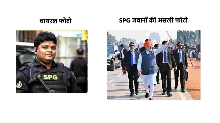 पीएम मोदी की सुरक्षा में तैनात SPG जवानों की ड्रेस और वायरल फोटो में कोई समानता नहीं है. किसी भी SPG जवान की यूनिफॉर्म में उस तरह बड़े-बड़े अक्षरों में SPG नहीं लिखा, जैसा कि फोटो में दिखाया गया है. तस्वीरें देखने के लिए दाईं और स्वाइप करें.